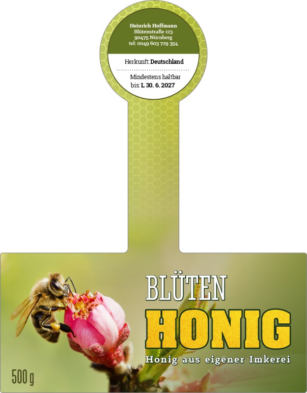 Wählen Sie die Honigsorte oder schreiben Sie Ihre eigene.Geben Sie Ihre Bezeichnung der Honigsorte ein.„Auf dem Etikett wird die ausgewählte Honigsorte angegeben.„Auf dem Etikett wird die ausgewählte Honigsorte angegeben.„Auf dem Etikett wird die ausgewählte Honigsorte angegeben.„Auf dem Etikett wird die ausgewählte Honigsorte angegeben.„Auf dem Etikett wird die ausgewählte Honigsorte angegeben.„Auf dem Etikett wird die ausgewählte Honigsorte angegeben.„Auf dem Etikett wird die ausgewählte Honigsorte angegeben.„Auf dem Etikett wird die ausgewählte Honigsorte angegeben.„Auf dem Etikett wird die ausgewählte Honigsorte angegeben.„Auf dem Etikett wird die ausgewählte Honigsorte angegeben.„Auf dem Etikett wird die ausgewählte Honigsorte angegeben.„Es wird keine Honigsorte angegeben. Es bleibt nur die Bezeichnung HONIG.