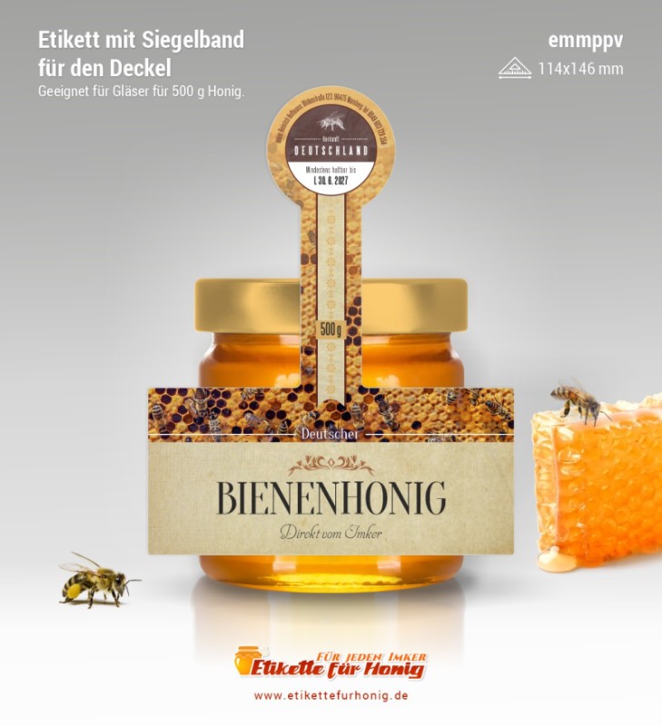 Startseite > Honigetiketten 114x146mm und 90x119mm, mit Siegelband > Honigetiketten 114x146mm, mit Siegelband (500g)