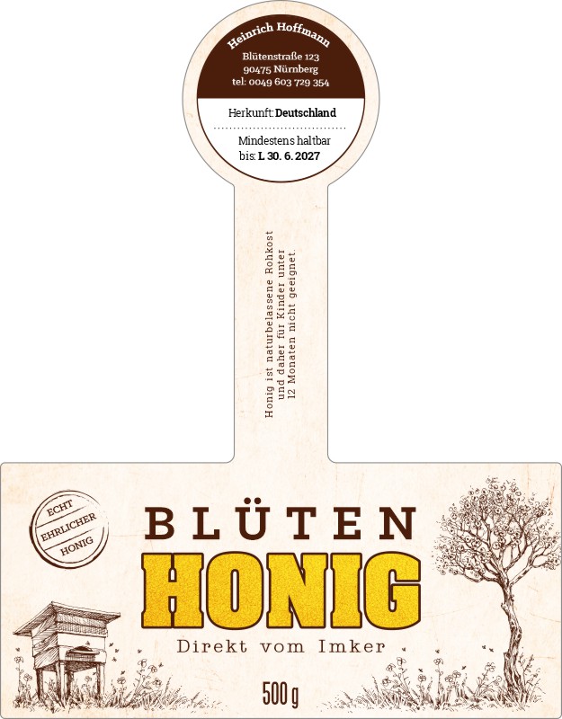 Wählen Sie die Honigsorte oder schreiben Sie Ihre eigene.Geben Sie Ihre Bezeichnung der Honigsorte ein.„Auf dem Etikett wird die ausgewählte Honigsorte angegeben.„Auf dem Etikett wird die ausgewählte Honigsorte angegeben.„Auf dem Etikett wird die ausgewählte Honigsorte angegeben.„Auf dem Etikett wird die ausgewählte Honigsorte angegeben.„Auf dem Etikett wird die ausgewählte Honigsorte angegeben.„Auf dem Etikett wird die ausgewählte Honigsorte angegeben.„Auf dem Etikett wird die ausgewählte Honigsorte angegeben.„Auf dem Etikett wird die ausgewählte Honigsorte angegeben.„Auf dem Etikett wird die ausgewählte Honigsorte angegeben.„Auf dem Etikett wird die ausgewählte Honigsorte angegeben.„Auf dem Etikett wird die ausgewählte Honigsorte angegeben.„Es wird keine Honigsorte angegeben. Es bleibt nur die Bezeichnung HONIG.