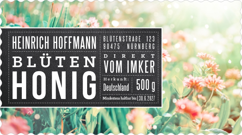 Wählen Sie die Honigsorte oder schreiben Sie Ihre eigene.Geben Sie Ihre Bezeichnung der Honigsorte ein.„Auf dem Etikett wird die ausgewählte Honigsorte angegeben.„Auf dem Etikett wird die ausgewählte Honigsorte angegeben.„Auf dem Etikett wird die ausgewählte Honigsorte angegeben.„Auf dem Etikett wird die ausgewählte Honigsorte angegeben.„Auf dem Etikett wird die ausgewählte Honigsorte angegeben.„Auf dem Etikett wird die ausgewählte Honigsorte angegeben.„Auf dem Etikett wird die ausgewählte Honigsorte angegeben.„Auf dem Etikett wird die ausgewählte Honigsorte angegeben.„Auf dem Etikett wird die ausgewählte Honigsorte angegeben.„Auf dem Etikett wird die ausgewählte Honigsorte angegeben.„Auf dem Etikett wird die ausgewählte Honigsorte angegeben.„Es wird keine Honigsorte angegeben. Es bleibt nur die Bezeichnung HONIG.