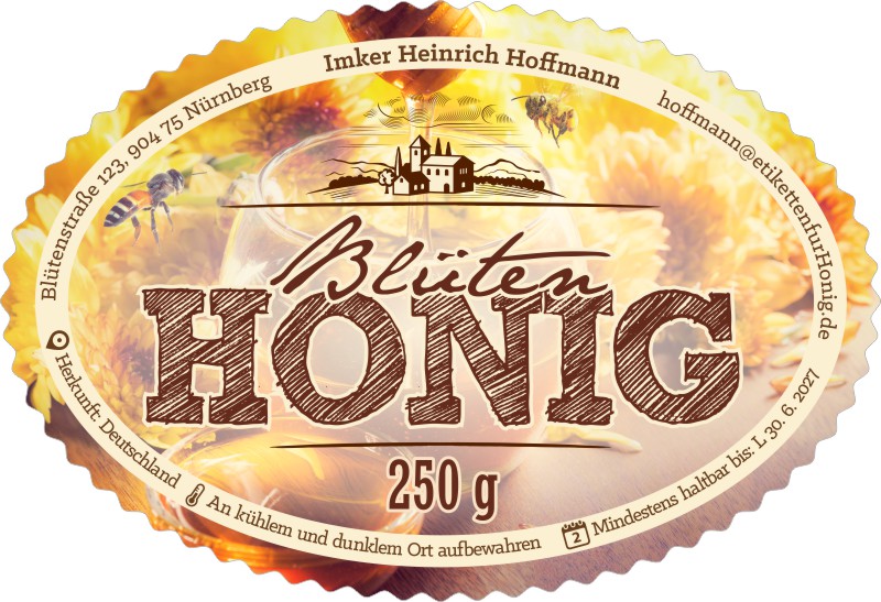 Wählen Sie die Honigsorte oder schreiben Sie Ihre eigene.Geben Sie Ihre Bezeichnung der Honigsorte ein.„Auf dem Etikett wird die ausgewählte Honigsorte angegeben.„Auf dem Etikett wird die ausgewählte Honigsorte angegeben.„Auf dem Etikett wird die ausgewählte Honigsorte angegeben.„Auf dem Etikett wird die ausgewählte Honigsorte angegeben.„Auf dem Etikett wird die ausgewählte Honigsorte angegeben.„Auf dem Etikett wird die ausgewählte Honigsorte angegeben.„Auf dem Etikett wird die ausgewählte Honigsorte angegeben.„Auf dem Etikett wird die ausgewählte Honigsorte angegeben.„Auf dem Etikett wird die ausgewählte Honigsorte angegeben.„Auf dem Etikett wird die ausgewählte Honigsorte angegeben.„Auf dem Etikett wird die ausgewählte Honigsorte angegeben.„Es wird keine Honigsorte angegeben. Es bleibt nur die Bezeichnung HONIG.