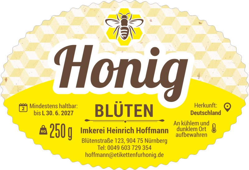Wählen Sie die Honigsorte oder schreiben Sie Ihre eigene.Geben Sie Ihre Bezeichnung der Honigsorte ein.„Auf dem Etikett wird die ausgewählte Honigsorte angegeben.„Auf dem Etikett wird die ausgewählte Honigsorte angegeben.„Auf dem Etikett wird die ausgewählte Honigsorte angegeben.„Auf dem Etikett wird die ausgewählte Honigsorte angegeben.„Auf dem Etikett wird die ausgewählte Honigsorte angegeben.„Auf dem Etikett wird die ausgewählte Honigsorte angegeben.„Auf dem Etikett wird die ausgewählte Honigsorte angegeben.„Auf dem Etikett wird die ausgewählte Honigsorte angegeben.„Auf dem Etikett wird die ausgewählte Honigsorte angegeben.„Auf dem Etikett wird die ausgewählte Honigsorte angegeben.„Auf dem Etikett wird die ausgewählte Honigsorte angegeben.„Es wird keine Honigsorte angegeben. Es bleibt nur die Bezeichnung HONIG.