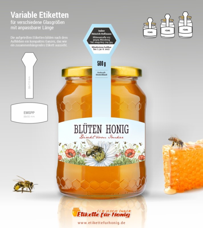 Wählen Sie die Honigsorte oder schreiben Sie Ihre eigene.Geben Sie Ihre Bezeichnung der Honigsorte ein.„Auf dem Etikett wird die ausgewählte Honigsorte angegeben.„Auf dem Etikett wird die ausgewählte Honigsorte angegeben.„Auf dem Etikett wird die ausgewählte Honigsorte angegeben.„Auf dem Etikett wird die ausgewählte Honigsorte angegeben.„Auf dem Etikett wird die ausgewählte Honigsorte angegeben.„Auf dem Etikett wird die ausgewählte Honigsorte angegeben.„Auf dem Etikett wird die ausgewählte Honigsorte angegeben.„Auf dem Etikett wird die ausgewählte Honigsorte angegeben.„Auf dem Etikett wird die ausgewählte Honigsorte angegeben.„Auf dem Etikett wird die ausgewählte Honigsorte angegeben.„Auf dem Etikett wird die ausgewählte Honigsorte angegeben.„Es wird keine Honigsorte angegeben. Es bleibt nur die Bezeichnung HONIG.