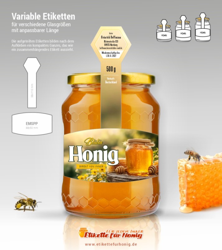 Wählen Sie die Honigsorte oder schreiben Sie Ihre eigene.Geben Sie Ihre Bezeichnung der Honigsorte ein.„Auf dem Etikett wird die ausgewählte Honigsorte angegeben.„Auf dem Etikett wird die ausgewählte Honigsorte angegeben.„Auf dem Etikett wird die ausgewählte Honigsorte angegeben.„Auf dem Etikett wird die ausgewählte Honigsorte angegeben.„Auf dem Etikett wird die ausgewählte Honigsorte angegeben.„Auf dem Etikett wird die ausgewählte Honigsorte angegeben.„Auf dem Etikett wird die ausgewählte Honigsorte angegeben.„Auf dem Etikett wird die ausgewählte Honigsorte angegeben.„Auf dem Etikett wird die ausgewählte Honigsorte angegeben.„Auf dem Etikett wird die ausgewählte Honigsorte angegeben.„Auf dem Etikett wird die ausgewählte Honigsorte angegeben.„Es wird keine Honigsorte angegeben. Es bleibt nur die Bezeichnung HONIG.