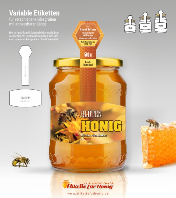 Wählen Sie die Honigsorte oder schreiben Sie Ihre eigene.Geben Sie Ihre Bezeichnung der Honigsorte ein.„Auf dem Etikett wird die ausgewählte Honigsorte angegeben.„Auf dem Etikett wird die ausgewählte Honigsorte angegeben.„Auf dem Etikett wird die ausgewählte Honigsorte angegeben.„Auf dem Etikett wird die ausgewählte Honigsorte angegeben.„Auf dem Etikett wird die ausgewählte Honigsorte angegeben.„Auf dem Etikett wird die ausgewählte Honigsorte angegeben.„Auf dem Etikett wird die ausgewählte Honigsorte angegeben.„Auf dem Etikett wird die ausgewählte Honigsorte angegeben.„Auf dem Etikett wird die ausgewählte Honigsorte angegeben.„Auf dem Etikett wird die ausgewählte Honigsorte angegeben.„Auf dem Etikett wird die ausgewählte Honigsorte angegeben.„Es wird keine Honigsorte angegeben. Es bleibt nur die Bezeichnung HONIG.