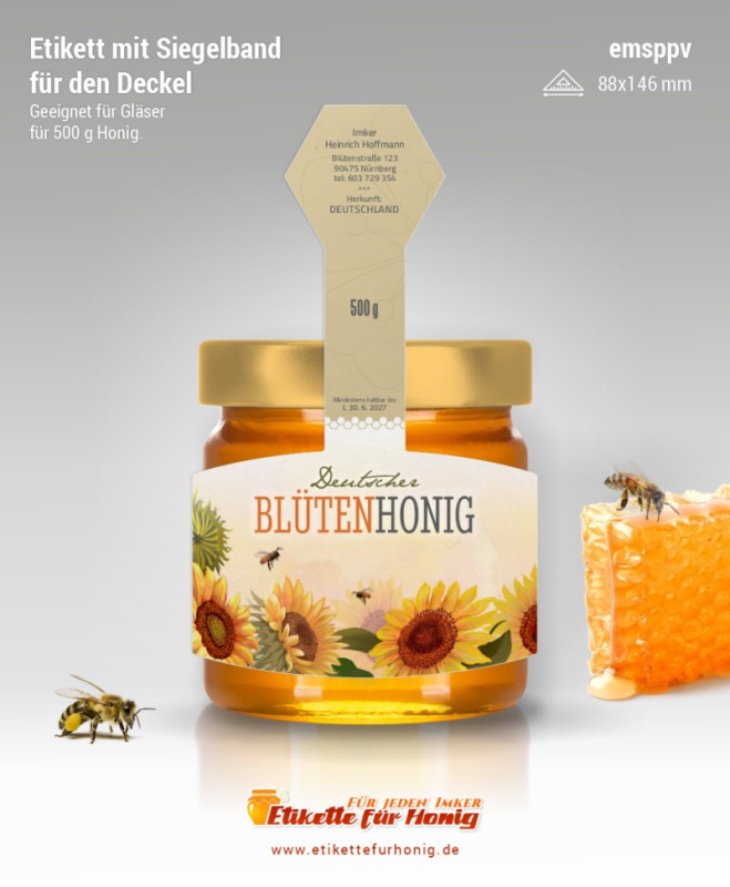 Startseite > Honigetiketten 88x146mm und 72x120mm, mit Siegelband > Honigetiketten 88x146mm, mit Siegelband (500g)