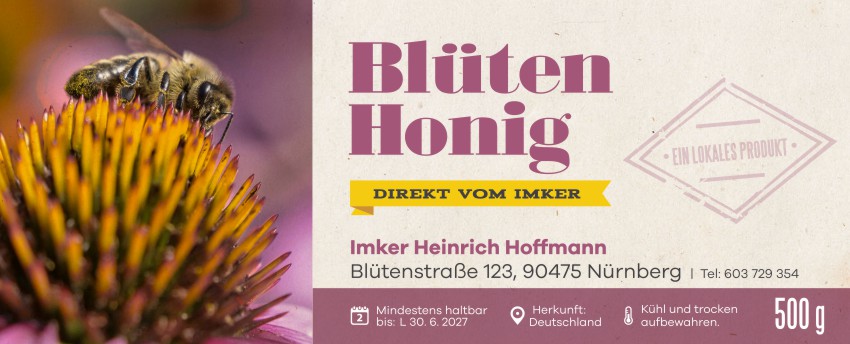 Wählen Sie die Honigsorte oder schreiben Sie Ihre eigene.Geben Sie Ihre Bezeichnung der Honigsorte ein.„Auf dem Etikett wird die ausgewählte Honigsorte angegeben.„Auf dem Etikett wird die ausgewählte Honigsorte angegeben.„Auf dem Etikett wird die ausgewählte Honigsorte angegeben.„Auf dem Etikett wird die ausgewählte Honigsorte angegeben.„Auf dem Etikett wird die ausgewählte Honigsorte angegeben.„Auf dem Etikett wird die ausgewählte Honigsorte angegeben.„Auf dem Etikett wird die ausgewählte Honigsorte angegeben.„Auf dem Etikett wird die ausgewählte Honigsorte angegeben.„Auf dem Etikett wird die ausgewählte Honigsorte angegeben.„Auf dem Etikett wird die ausgewählte Honigsorte angegeben.„Auf dem Etikett wird die ausgewählte Honigsorte angegeben.„Es wird keine Honigsorte angegeben. Es bleibt nur die Bezeichnung HONIG.