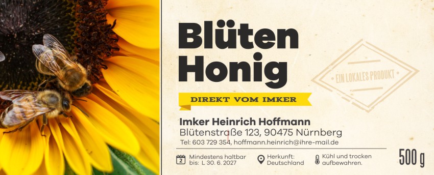 Wählen Sie die Honigsorte oder schreiben Sie Ihre eigene.Geben Sie Ihre Bezeichnung der Honigsorte ein.„Auf dem Etikett wird die ausgewählte Honigsorte angegeben.„Auf dem Etikett wird die ausgewählte Honigsorte angegeben.„Auf dem Etikett wird die ausgewählte Honigsorte angegeben.„Auf dem Etikett wird die ausgewählte Honigsorte angegeben.„Auf dem Etikett wird die ausgewählte Honigsorte angegeben.„Auf dem Etikett wird die ausgewählte Honigsorte angegeben.„Auf dem Etikett wird die ausgewählte Honigsorte angegeben.„Auf dem Etikett wird die ausgewählte Honigsorte angegeben.„Auf dem Etikett wird die ausgewählte Honigsorte angegeben.„Auf dem Etikett wird die ausgewählte Honigsorte angegeben.„Auf dem Etikett wird die ausgewählte Honigsorte angegeben.„Es wird keine Honigsorte angegeben. Es bleibt nur die Bezeichnung HONIG.