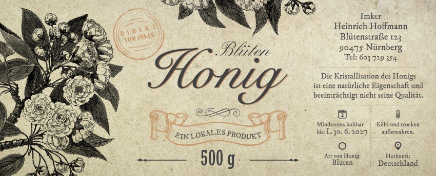 Wählen Sie die Honigsorte oder schreiben Sie Ihre eigene.Geben Sie Ihre Bezeichnung der Honigsorte ein.„Auf dem Etikett wird die ausgewählte Honigsorte angegeben.„Auf dem Etikett wird die ausgewählte Honigsorte angegeben.„Auf dem Etikett wird die ausgewählte Honigsorte angegeben.„Auf dem Etikett wird die ausgewählte Honigsorte angegeben.„Auf dem Etikett wird die ausgewählte Honigsorte angegeben.„Auf dem Etikett wird die ausgewählte Honigsorte angegeben.„Auf dem Etikett wird die ausgewählte Honigsorte angegeben.„Auf dem Etikett wird die ausgewählte Honigsorte angegeben.„Auf dem Etikett wird die ausgewählte Honigsorte angegeben.„Auf dem Etikett wird die ausgewählte Honigsorte angegeben.„Auf dem Etikett wird die ausgewählte Honigsorte angegeben.„Es wird keine Honigsorte angegeben. Es bleibt nur die Bezeichnung HONIG.