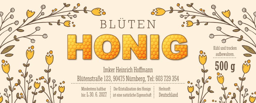 Wählen Sie die Honigsorte oder schreiben Sie Ihre eigene.Geben Sie Ihre Bezeichnung der Honigsorte ein.„Auf dem Etikett wird die ausgewählte Honigsorte angegeben.„Auf dem Etikett wird die ausgewählte Honigsorte angegeben.„Auf dem Etikett wird die ausgewählte Honigsorte angegeben.„Auf dem Etikett wird die ausgewählte Honigsorte angegeben.„Auf dem Etikett wird die ausgewählte Honigsorte angegeben.„Auf dem Etikett wird die ausgewählte Honigsorte angegeben.„Auf dem Etikett wird die ausgewählte Honigsorte angegeben.„Auf dem Etikett wird die ausgewählte Honigsorte angegeben.„Auf dem Etikett wird die ausgewählte Honigsorte angegeben.„Auf dem Etikett wird die ausgewählte Honigsorte angegeben.„Auf dem Etikett wird die ausgewählte Honigsorte angegeben.„Es wird keine Honigsorte angegeben. Es bleibt nur die Bezeichnung HONIG.