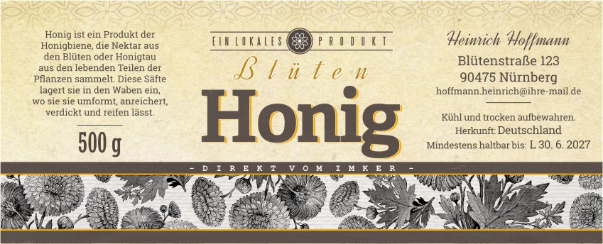 Wählen Sie die Honigsorte oder schreiben Sie Ihre eigene.Geben Sie Ihre Bezeichnung der Honigsorte ein.„Auf dem Etikett wird die ausgewählte Honigsorte angegeben.„Auf dem Etikett wird die ausgewählte Honigsorte angegeben.„Auf dem Etikett wird die ausgewählte Honigsorte angegeben.„Auf dem Etikett wird die ausgewählte Honigsorte angegeben.„Auf dem Etikett wird die ausgewählte Honigsorte angegeben.„Auf dem Etikett wird die ausgewählte Honigsorte angegeben.„Auf dem Etikett wird die ausgewählte Honigsorte angegeben.„Auf dem Etikett wird die ausgewählte Honigsorte angegeben.„Auf dem Etikett wird die ausgewählte Honigsorte angegeben.„Auf dem Etikett wird die ausgewählte Honigsorte angegeben.„Auf dem Etikett wird die ausgewählte Honigsorte angegeben.„Es wird keine Honigsorte angegeben. Es bleibt nur die Bezeichnung HONIG.