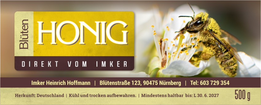 Wählen Sie die Honigsorte oder schreiben Sie Ihre eigene.Geben Sie Ihre Bezeichnung der Honigsorte ein.„Auf dem Etikett wird die ausgewählte Honigsorte angegeben.„Auf dem Etikett wird die ausgewählte Honigsorte angegeben.„Auf dem Etikett wird die ausgewählte Honigsorte angegeben.„Auf dem Etikett wird die ausgewählte Honigsorte angegeben.„Auf dem Etikett wird die ausgewählte Honigsorte angegeben.„Auf dem Etikett wird die ausgewählte Honigsorte angegeben.„Auf dem Etikett wird die ausgewählte Honigsorte angegeben.„Auf dem Etikett wird die ausgewählte Honigsorte angegeben.„Auf dem Etikett wird die ausgewählte Honigsorte angegeben.„Auf dem Etikett wird die ausgewählte Honigsorte angegeben.„Auf dem Etikett wird die ausgewählte Honigsorte angegeben.„Es wird keine Honigsorte angegeben. Es bleibt nur die Bezeichnung HONIG.