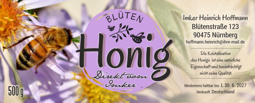 Wählen Sie die Honigsorte oder schreiben Sie Ihre eigene.Geben Sie Ihre Bezeichnung der Honigsorte ein.„Auf dem Etikett wird die ausgewählte Honigsorte angegeben.„Auf dem Etikett wird die ausgewählte Honigsorte angegeben.„Auf dem Etikett wird die ausgewählte Honigsorte angegeben.„Auf dem Etikett wird die ausgewählte Honigsorte angegeben.„Auf dem Etikett wird die ausgewählte Honigsorte angegeben.„Auf dem Etikett wird die ausgewählte Honigsorte angegeben.„Auf dem Etikett wird die ausgewählte Honigsorte angegeben.„Auf dem Etikett wird die ausgewählte Honigsorte angegeben.„Auf dem Etikett wird die ausgewählte Honigsorte angegeben.„Auf dem Etikett wird die ausgewählte Honigsorte angegeben.„Auf dem Etikett wird die ausgewählte Honigsorte angegeben.„Es wird keine Honigsorte angegeben. Es bleibt nur die Bezeichnung HONIG.