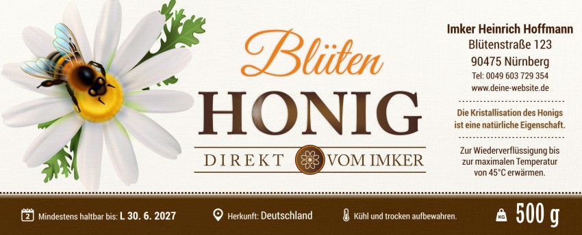 Wählen Sie die Honigsorte oder schreiben Sie Ihre eigene.Geben Sie Ihre Bezeichnung der Honigsorte ein.„Auf dem Etikett wird die ausgewählte Honigsorte angegeben.„Auf dem Etikett wird die ausgewählte Honigsorte angegeben.„Auf dem Etikett wird die ausgewählte Honigsorte angegeben.„Auf dem Etikett wird die ausgewählte Honigsorte angegeben.„Auf dem Etikett wird die ausgewählte Honigsorte angegeben.„Auf dem Etikett wird die ausgewählte Honigsorte angegeben.„Auf dem Etikett wird die ausgewählte Honigsorte angegeben.„Auf dem Etikett wird die ausgewählte Honigsorte angegeben.„Auf dem Etikett wird die ausgewählte Honigsorte angegeben.„Auf dem Etikett wird die ausgewählte Honigsorte angegeben.„Auf dem Etikett wird die ausgewählte Honigsorte angegeben.„Es wird keine Honigsorte angegeben. Es bleibt nur die Bezeichnung HONIG.