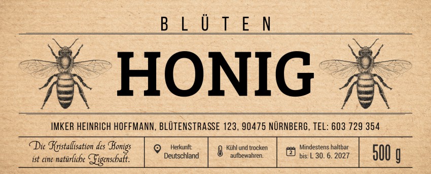 Wählen Sie die Honigsorte oder schreiben Sie Ihre eigene.Geben Sie Ihre Bezeichnung der Honigsorte ein.„Auf dem Etikett wird die ausgewählte Honigsorte angegeben.„Auf dem Etikett wird die ausgewählte Honigsorte angegeben.„Auf dem Etikett wird die ausgewählte Honigsorte angegeben.„Auf dem Etikett wird die ausgewählte Honigsorte angegeben.„Auf dem Etikett wird die ausgewählte Honigsorte angegeben.„Auf dem Etikett wird die ausgewählte Honigsorte angegeben.„Auf dem Etikett wird die ausgewählte Honigsorte angegeben.„Auf dem Etikett wird die ausgewählte Honigsorte angegeben.„Auf dem Etikett wird die ausgewählte Honigsorte angegeben.„Auf dem Etikett wird die ausgewählte Honigsorte angegeben.„Auf dem Etikett wird die ausgewählte Honigsorte angegeben.„Es wird keine Honigsorte angegeben. Es bleibt nur die Bezeichnung HONIG.