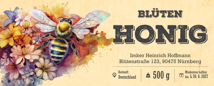 Wählen Sie die Honigsorte oder schreiben Sie Ihre eigene.Geben Sie Ihre Bezeichnung der Honigsorte ein.„Auf dem Etikett wird die ausgewählte Honigsorte angegeben.„Auf dem Etikett wird die ausgewählte Honigsorte angegeben.„Auf dem Etikett wird die ausgewählte Honigsorte angegeben.„Auf dem Etikett wird die ausgewählte Honigsorte angegeben.„Auf dem Etikett wird die ausgewählte Honigsorte angegeben.„Auf dem Etikett wird die ausgewählte Honigsorte angegeben.„Auf dem Etikett wird die ausgewählte Honigsorte angegeben.„Auf dem Etikett wird die ausgewählte Honigsorte angegeben.„Auf dem Etikett wird die ausgewählte Honigsorte angegeben.„Auf dem Etikett wird die ausgewählte Honigsorte angegeben.„Auf dem Etikett wird die ausgewählte Honigsorte angegeben.„Es wird keine Honigsorte angegeben. Es bleibt nur die Bezeichnung HONIG.