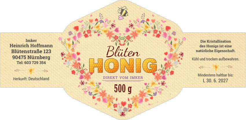 Wählen Sie die Honigsorte oder schreiben Sie Ihre eigene.Geben Sie Ihre Bezeichnung der Honigsorte ein.„Auf dem Etikett wird die ausgewählte Honigsorte angegeben.„Auf dem Etikett wird die ausgewählte Honigsorte angegeben.„Auf dem Etikett wird die ausgewählte Honigsorte angegeben.„Auf dem Etikett wird die ausgewählte Honigsorte angegeben.„Auf dem Etikett wird die ausgewählte Honigsorte angegeben.„Auf dem Etikett wird die ausgewählte Honigsorte angegeben.„Auf dem Etikett wird die ausgewählte Honigsorte angegeben.„Auf dem Etikett wird die ausgewählte Honigsorte angegeben.„Auf dem Etikett wird die ausgewählte Honigsorte angegeben.„Auf dem Etikett wird die ausgewählte Honigsorte angegeben.„Auf dem Etikett wird die ausgewählte Honigsorte angegeben.„Es wird keine Honigsorte angegeben. Es bleibt nur die Bezeichnung HONIG.