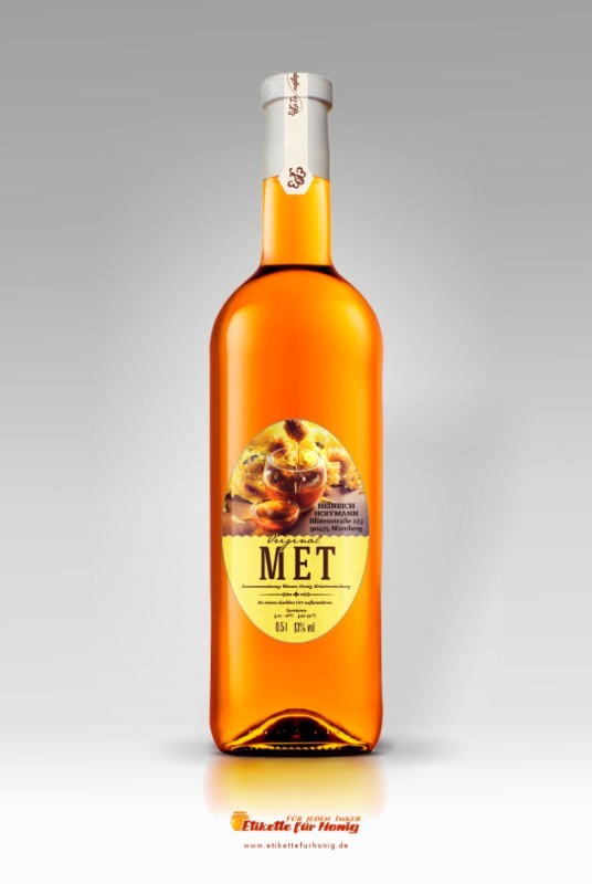 Etikett für die Metflasche. Das Etikett ist selbstklebend und hat das Format 61x90 mm. Das Etikett passen wir Ihrem Wunsch entsprechend a, ändern können Sie es mittels der Parameter - siehe oben. Diese Abänderungen geben Sie unentgeltlich im Detail eines jeden Etiketts ein.