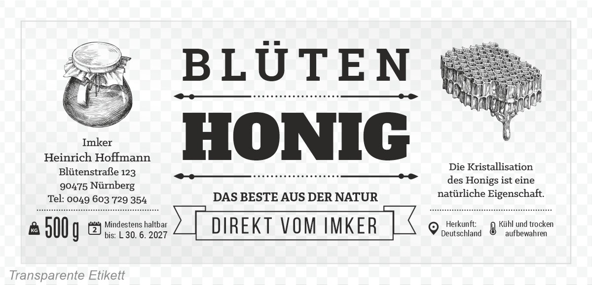 Produkt Transparenter Honigaufkleber - emvtrans- 10 v požadovaném množství není skladem.