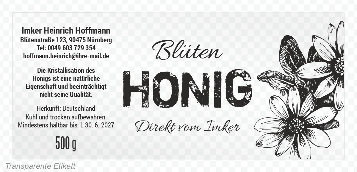 Produkt Transparenter Honigaufkleber - emvtrans- 13 v požadovaném množství není skladem.