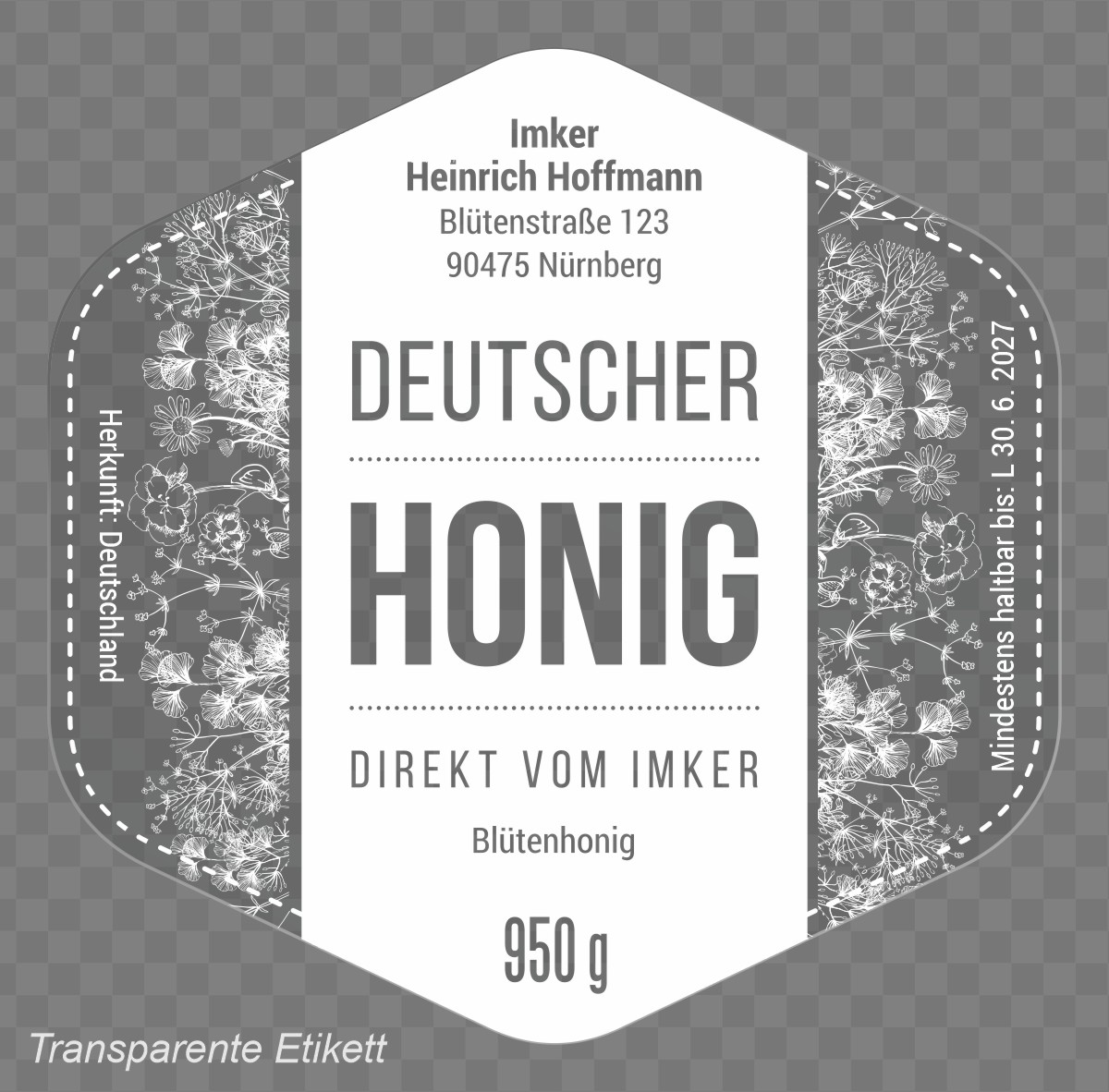 In den Warenkorb wurde gelegt Transparenter Honigaufkleber – Farbe Weiß – emh2trans-bw 11
