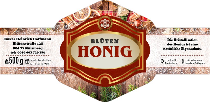 Wählen Sie die Honigsorte oder schreiben Sie Ihre eigene.Geben Sie Ihre Bezeichnung der Honigsorte ein.„Auf dem Etikett wird die ausgewählte Honigsorte angegeben.„Auf dem Etikett wird die ausgewählte Honigsorte angegeben.„Auf dem Etikett wird die ausgewählte Honigsorte angegeben.„Auf dem Etikett wird die ausgewählte Honigsorte angegeben.„Auf dem Etikett wird die ausgewählte Honigsorte angegeben.„Auf dem Etikett wird die ausgewählte Honigsorte angegeben.„Auf dem Etikett wird die ausgewählte Honigsorte angegeben.„Auf dem Etikett wird die ausgewählte Honigsorte angegeben.„Auf dem Etikett wird die ausgewählte Honigsorte angegeben.„Auf dem Etikett wird die ausgewählte Honigsorte angegeben.„Auf dem Etikett wird die ausgewählte Honigsorte angegeben.„Es wird keine Honigsorte angegeben. Es bleibt nur die Bezeichnung HONIG.