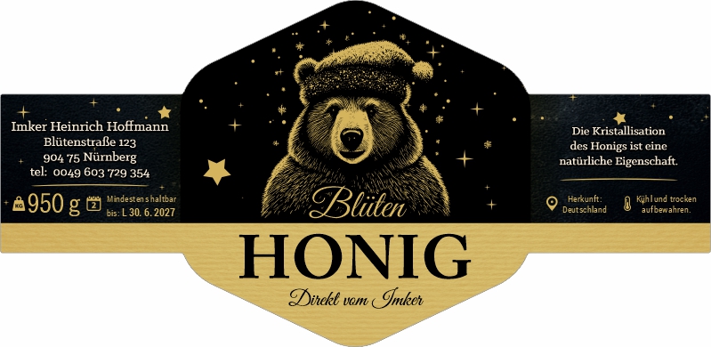 Wählen Sie die Honigsorte oder schreiben Sie Ihre eigene.Geben Sie Ihre Bezeichnung der Honigsorte ein.„Auf dem Etikett wird die ausgewählte Honigsorte angegeben.„Auf dem Etikett wird die ausgewählte Honigsorte angegeben.„Auf dem Etikett wird die ausgewählte Honigsorte angegeben.„Auf dem Etikett wird die ausgewählte Honigsorte angegeben.„Auf dem Etikett wird die ausgewählte Honigsorte angegeben.„Auf dem Etikett wird die ausgewählte Honigsorte angegeben.„Auf dem Etikett wird die ausgewählte Honigsorte angegeben.„Auf dem Etikett wird die ausgewählte Honigsorte angegeben.„Auf dem Etikett wird die ausgewählte Honigsorte angegeben.„Auf dem Etikett wird die ausgewählte Honigsorte angegeben.„Auf dem Etikett wird die ausgewählte Honigsorte angegeben.„Es wird keine Honigsorte angegeben. Es bleibt nur die Bezeichnung HONIG.